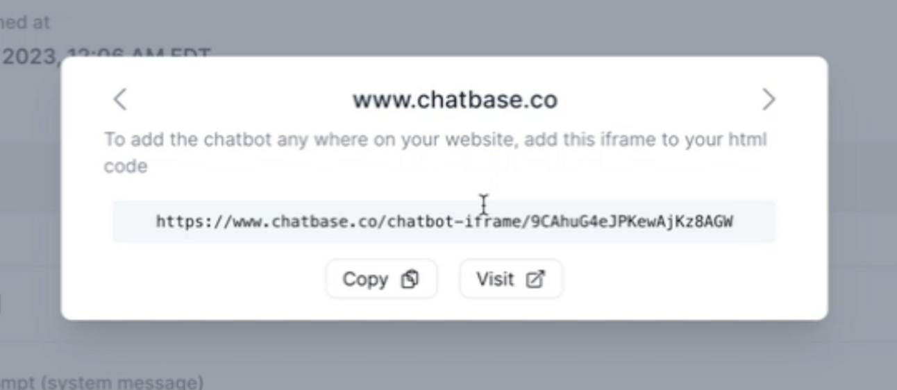 your chatbot with clients, external stakeholders, or embed it on your website. ChatBase provides an easy way to make your chatbot public and shareable.