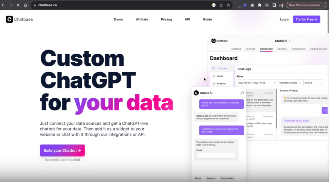 First off, you’ll need to head over to ChatBase and create an account. It’s as straightforward as it sounds. Hit the "Try for Free" button,